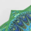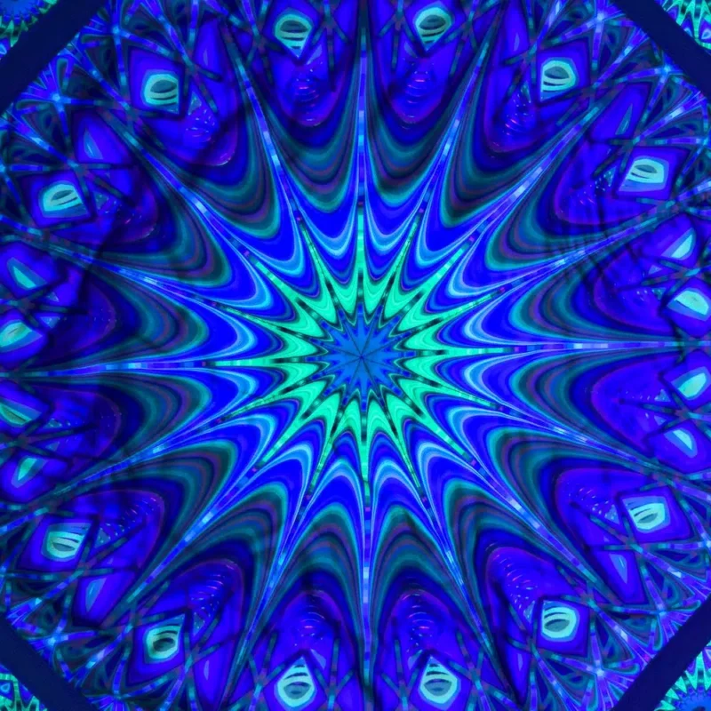 - Vibrant emerald green and blue geometric design, glowing vividly under UV light