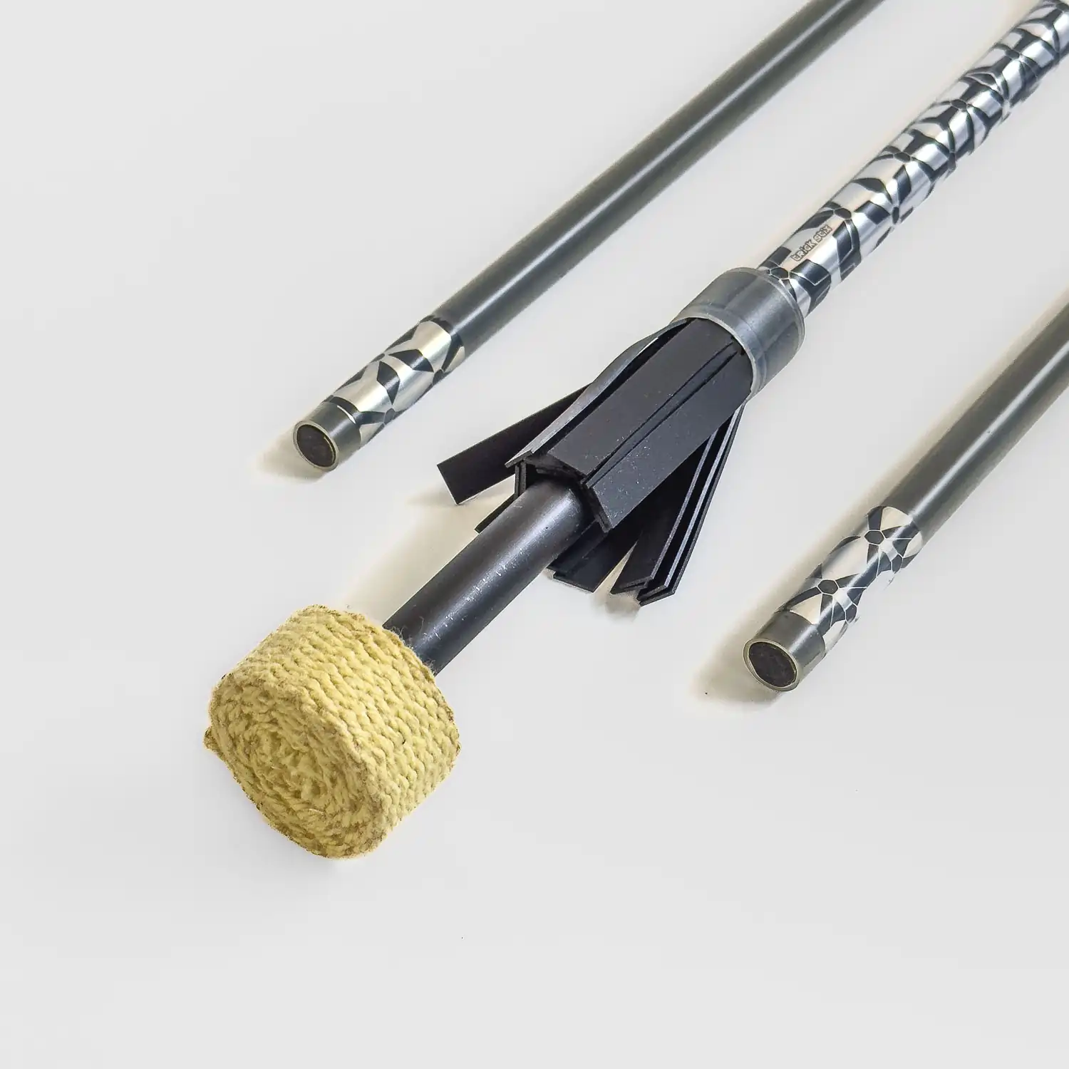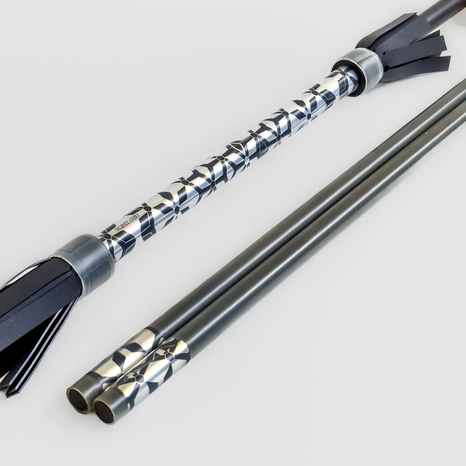 Fire Devil Sticks offer a fun alternative to your daytime or LED stick flow! Crafted from sturdy 16mm (5/8″) aluminum and equipped with long-lasting 25mm (1″) Kevlar wicks, you can expect over 100 burns. For enhanced grip and control, we’ve incorporated silicone on the control sticks and along the devil stick’s body. The silicone flowers at each end balance the weight, ensuring precise maneuvers.